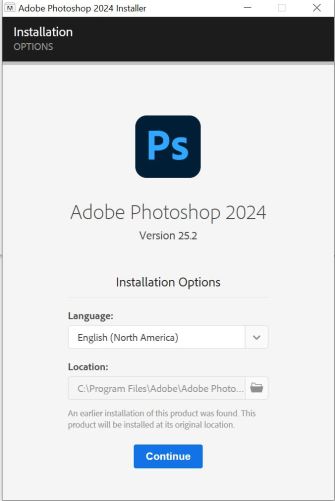 포토샵 한글판 원하시는 분들은 위에 설치 화면에서 언어만 Korean으로 바꿔주시면 한글로 설치 됩니다.